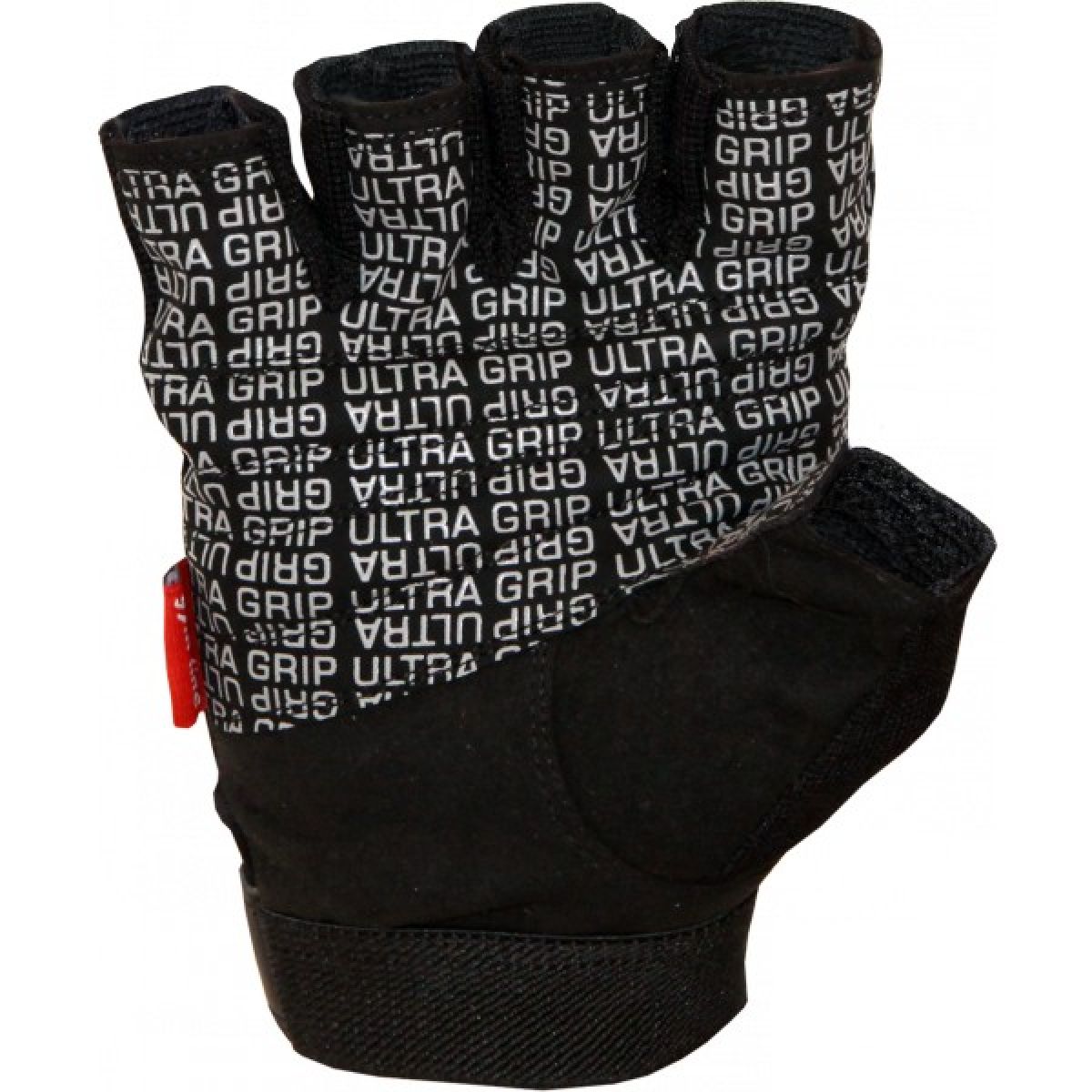 Rukavice jsou vyztužené syntetickou kůží v dlaňové části tak, aby poskytly komfort při cvičení. Vyztužení je doplněno o nápisy "Ultra Grip", které jsou matné a zároveň slouží proti skluzu při úchopu. Hřbetní část je tvořena pružnou látkou a pruhem syntetické kůže. Rukavice mají zapínání na suchý zip.