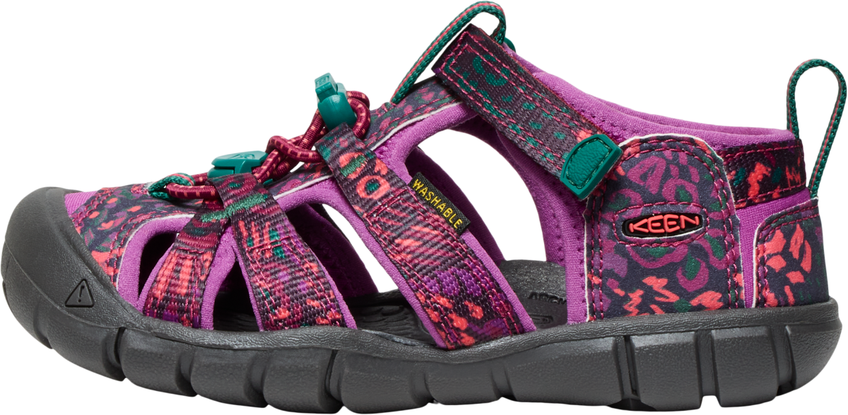 Skvělé a velmi populární dětské sandály Keen Seacamp II CNX pro všestranné využití jsou vyrobeny technologií KEEN.CNX. To znamená, že se jedná o nízkoprofilovou univerzální letní botu inspirovanou minimalistickým stylem obouvání. Nízký profil boty umožňuje přirozený pohyb nohy v maximálním rozsahu, zároveň však poskytuje chodidlu dostatečnou míru bezpečí, včetně patentované ochrany prstů. Model vyniká především nízkou hmotností. Svršek je z pevné polyesterové popruhoviny doplněné o rychleschnoucí podšívku. Anatomicky tvarovaná stélka z materiálu EVA zajišťuje podporu klenby chodidla a pohodlí při celodenním nošení. Kvalitní gumová podešev s vícesměrným vzorkem dobře přilne i k mokrému povrchu. Rychlozavazovací systém umožňuje snadné nazutí a rychlé upevnění na noze, které navíc ještě doplňuje pásek přes nárt se zapínáním na suchý zip. Boty jsou ošetřeny přírodní antibakteriální technologií ECO ODOR CONTROL proti zápachu a dají se prát v automatické pračce.