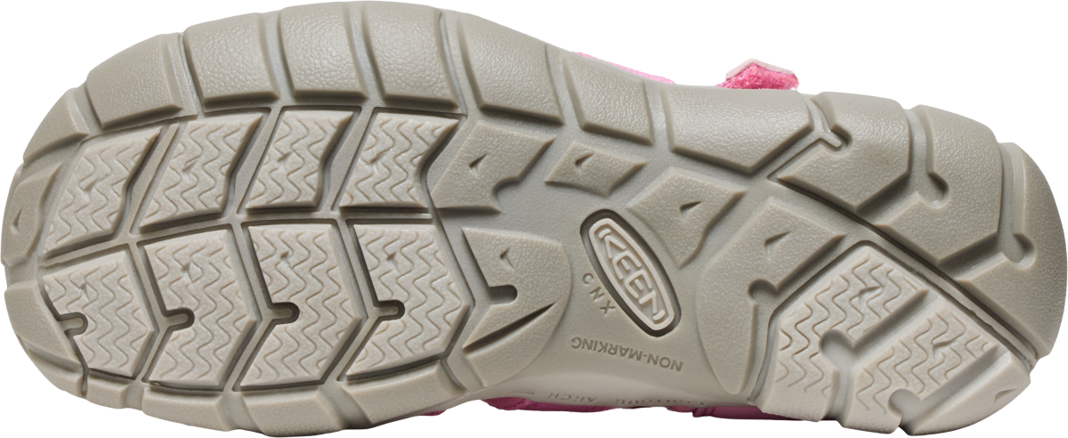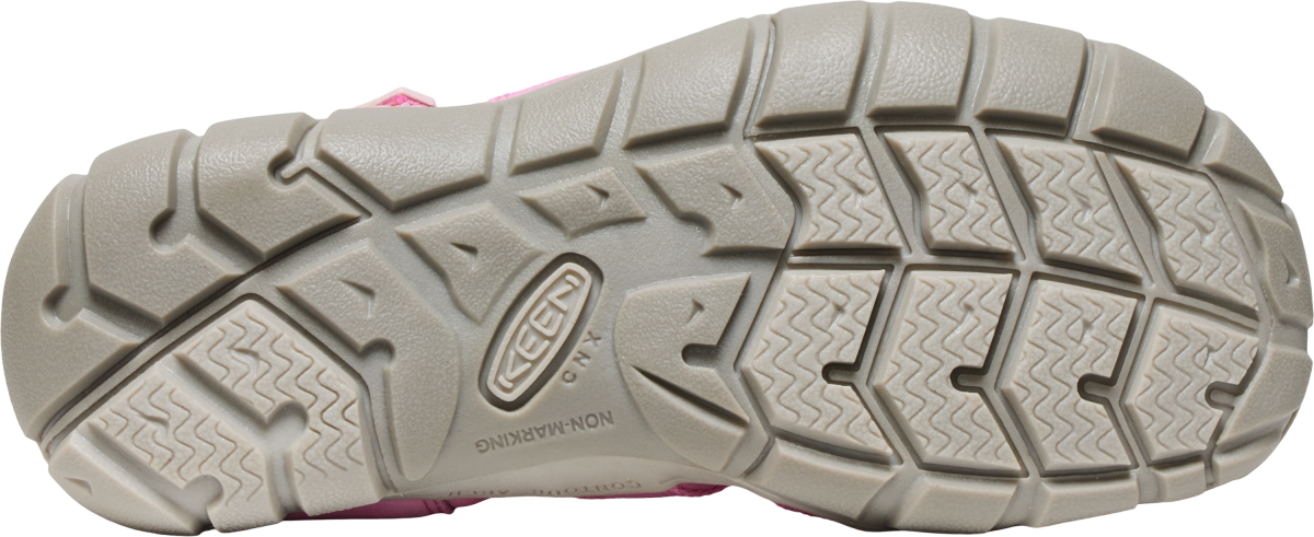 Skvělé a velmi populární dětské sandály Keen Seacamp II CNX pro všestranné využití jsou vyrobeny technologií KEEN.CNX. To znamená, že se jedná o nízkoprofilovou univerzální letní botu inspirovanou minimalistickým stylem obouvání. Nízký profil boty umožňuje přirozený pohyb nohy v maximálním rozsahu, zároveň však poskytuje chodidlu dostatečnou míru bezpečí, včetně patentované ochrany prstů. Model vyniká především nízkou hmotností. Svršek je z pevné polyesterové popruhoviny doplněné o rychleschnoucí podšívku. Anatomicky tvarovaná stélka z materiálu EVA zajišťuje podporu klenby chodidla a pohodlí při celodenním nošení. Kvalitní gumová podešev s vícesměrným vzorkem dobře přilne i k mokrému povrchu. Rychlozavazovací systém umožňuje snadné nazutí a rychlé upevnění na noze, které navíc ještě doplňuje pásek přes nárt se zapínáním na suchý zip. Boty jsou ošetřeny přírodní antibakteriální technologií ECO ODOR CONTROL proti zápachu a dají se prát v automatické pračce.