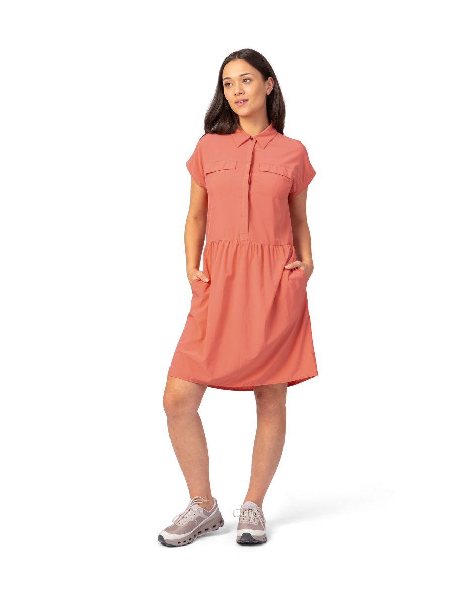 Dámské šaty Hannah Nya – lehký a pohodlný kousek do města i na cestování. Dámské šaty Hannah Nya jsou ideální volbou pro ženy, které hledají kombinaci ležérního stylu a funkčního materiálu. Díky pružnému materiálu se přizpůsobí pohybu a poskytnou komfort při každodenním nošení i cestování. Klíčové přednosti: Pohodlný střih s částečně propínacím předním dílem. Praktické kapsy – náprsní s patkou a dvě boční. Regulace pasu pomocí krátkého pásku pro zvýraznění siluety. Materiál AFT Stretch (94 % polyester, 6 % elastan) s antistatickou úpravou. Perfektní volba pro každý den: Šaty Hannah Nya spojují funkční vlastnosti a moderní design. Díky pružnému materiálu jsou maximálně pohodlné a praktické, takže se hodí jak do města, tak na volnočasové aktivity i cestování.