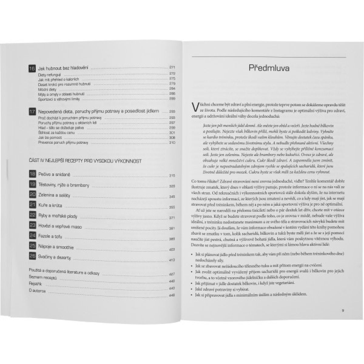 Kniha vychází z ověřených vědeckých poznatků a pomůže Vám zorientovat se ve světě stravovacích plánů, sacharidů, bílkovin, příjmu tekutin, biopotravin, potravinových doplňků nebo hubnutí nebo tvorby svalové tkáně.