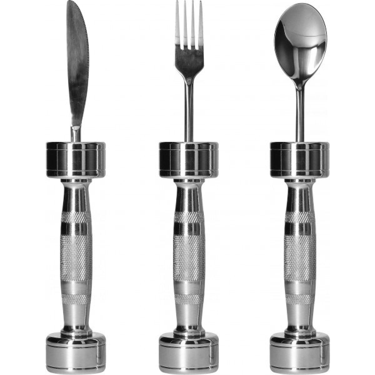 Stojánek je dělaný na míru pro fitness příbory - kilovou vidličku, kilový nůž a kilovou lžíci, které jsou skvělým dárkem pro pořádné sportovce.