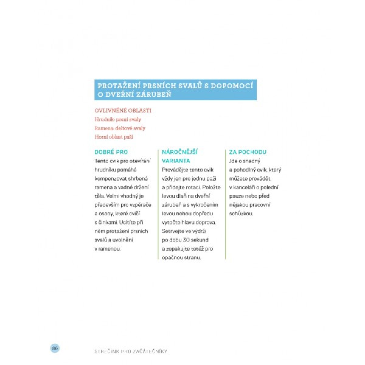 Protahujte se pomocí přehledně rozfázovaných základních cviků uspořádaných podle anatomických oblastí a získejte pohyblivost tam, kde ji nejvíc potřebujete.