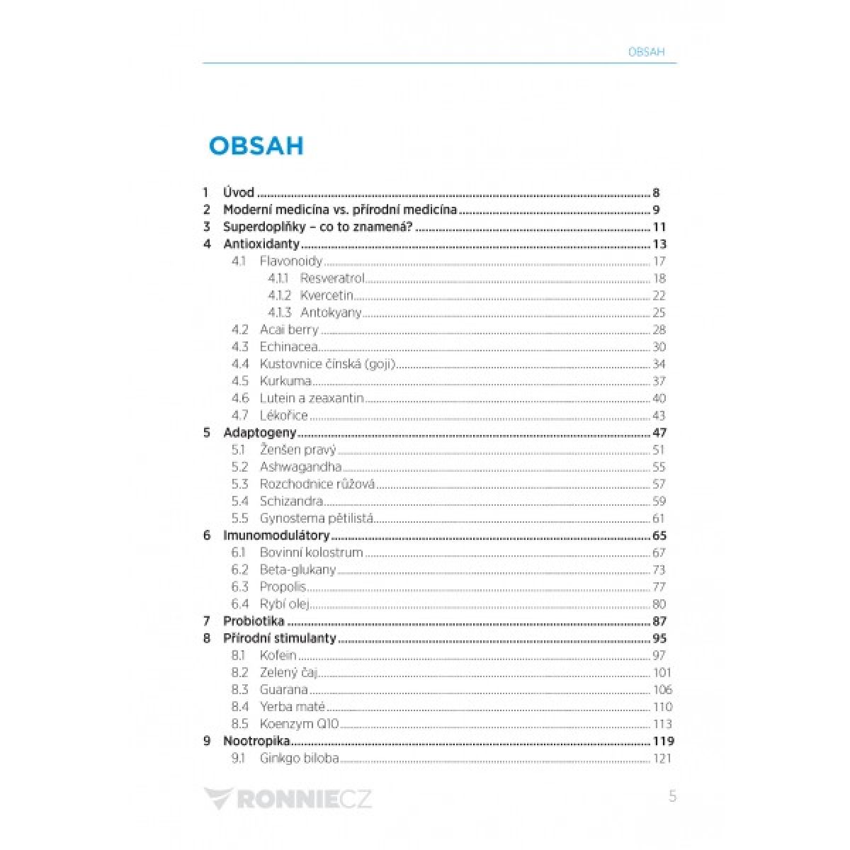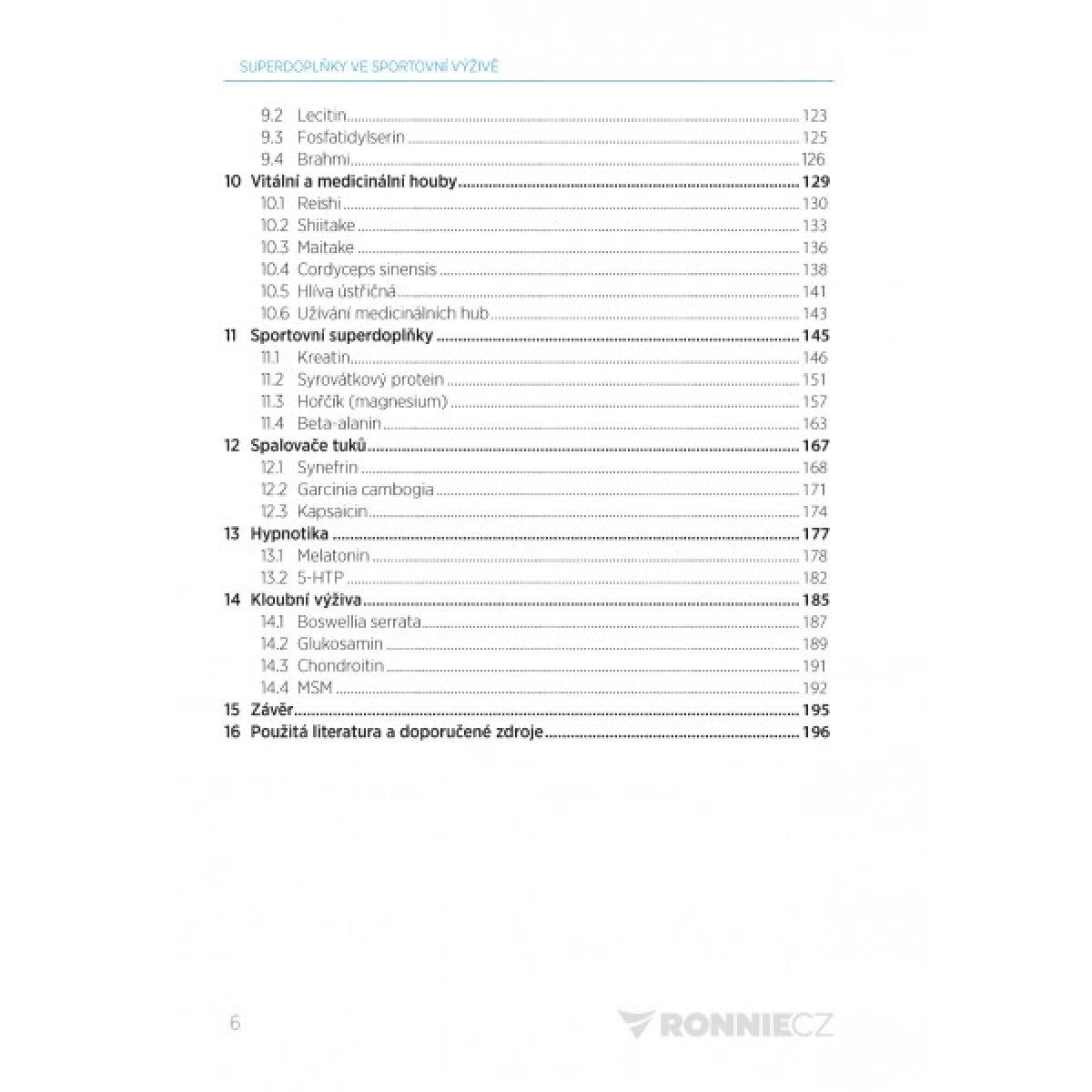 Kniha Superdoplňky ve sportovní výživě se zaměřuje na doplňky stravy a přírodní látky s vědecky podloženým pozitivním působením na různé oblasti zdraví a kondice - posílení imunity, zlepšení paměti, zvýšení hladin energie, podpora sportovního výkonu, budování svalové hmoty, hubnutí, zvýšení odolnosti vůči stresu, zlepšení kvality spánku, prevence srdečně-cévních chorob, podpora celkové vitality a mnoho dalších. Pozitivní účinky většiny doplňků stravy v této knize jsou tak pestré, že je skutečně můžeme označit za „superdoplňky“.