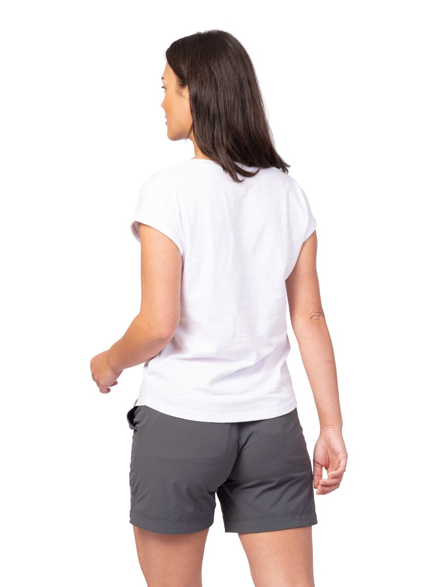 Dámské tričko ze 100% bavlny. Tričko ze 100% přírodního a kvalitního materiálu v pohodlném širokém - oversize střihu. Kulatý volnější výstřih a spadlé kratší rukávy. Strukturovaně žíhaný materiál s barevně decentním printem. Vyšší gramáž 160g/m2.
