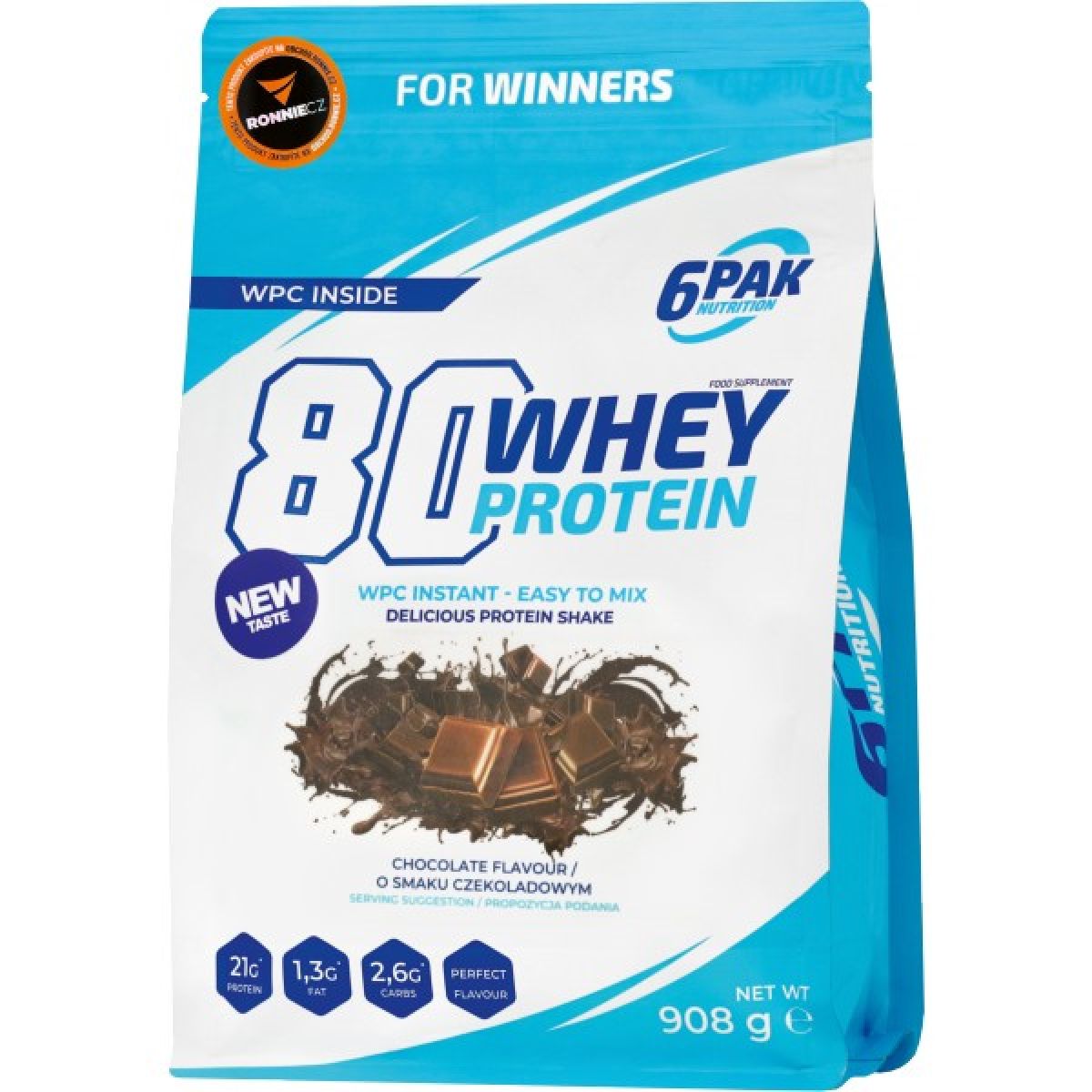 80 Whey Protein od 6Pak Nutrition je pečlivě vyvinutý proteinový doplněk, ze kterého si můžete připravit lahodné koktejly, nebo ho použít jako doplněk k vlastním fit pokrmům. Výběr až z 25 příchutí znamená, že není šance, že Vás tento produkt někdy omrzí. Proteinový doplněk 80 Whey Protein je vynikající pro všechny fyzicky aktivní lidi bez ohledu na úroveň jejich tréninku. Nemusíte být sportovec, abyste mohli užívat proteiny. 80 Whey Protein může používat každý, komu záleží na vzhledu těla, kondici a skvělé pohodě.