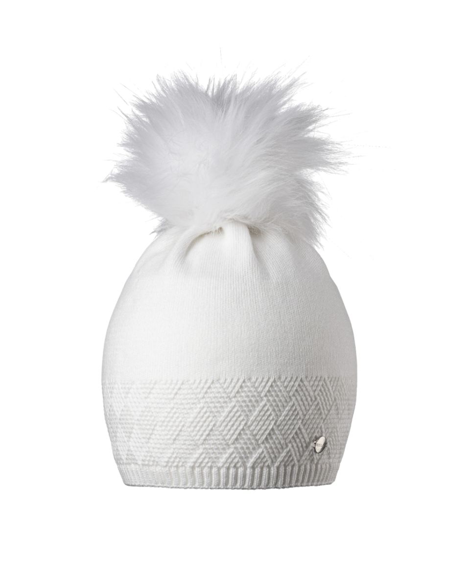 Elegantní dámská zimní čepice s bambulí z umělé kožešiny s jemným plastickým vzorem.